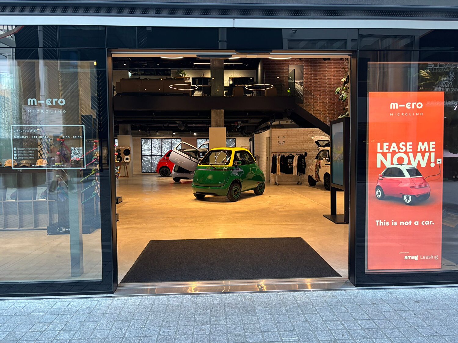 Der Microlino Brandstore ist mehr als ein Showroom – er ist eine Bühne für urbane Mobilität, Design und Innovation. Die Location eignet sich ideal für ausgewählte Events, Produktpräsentationen und Partneraktivierungen in einem besonderen Umfeld. Moderne Architektur und das kuratierte Fahrzeug-Setup sorgen für eine aufmerksamkeitsstarke, hochwertige Event-Atmosphäre.
